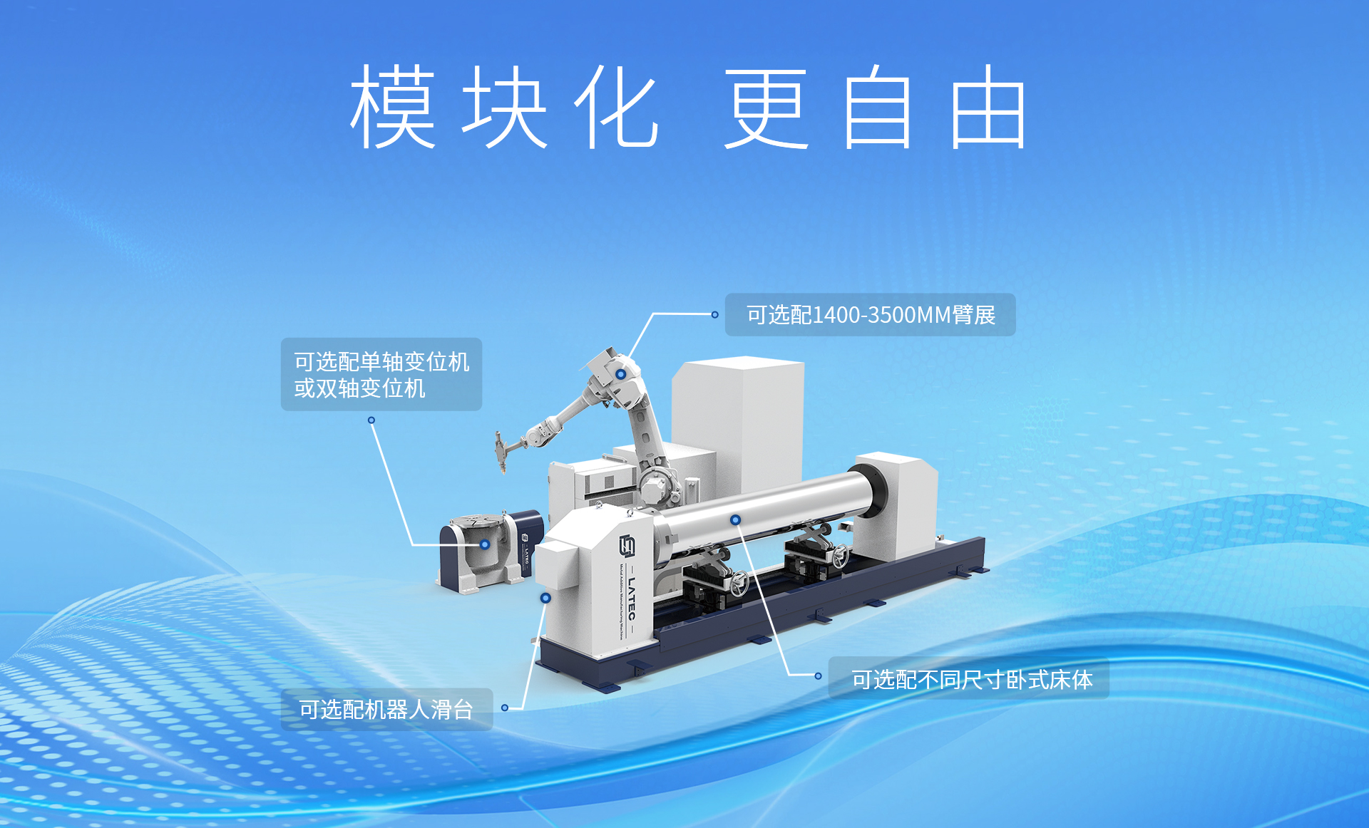 可搭配四轴/五轴转台,熔池监控,红外测温、数据采集、基板预热模块、超声波辅助振动模块等